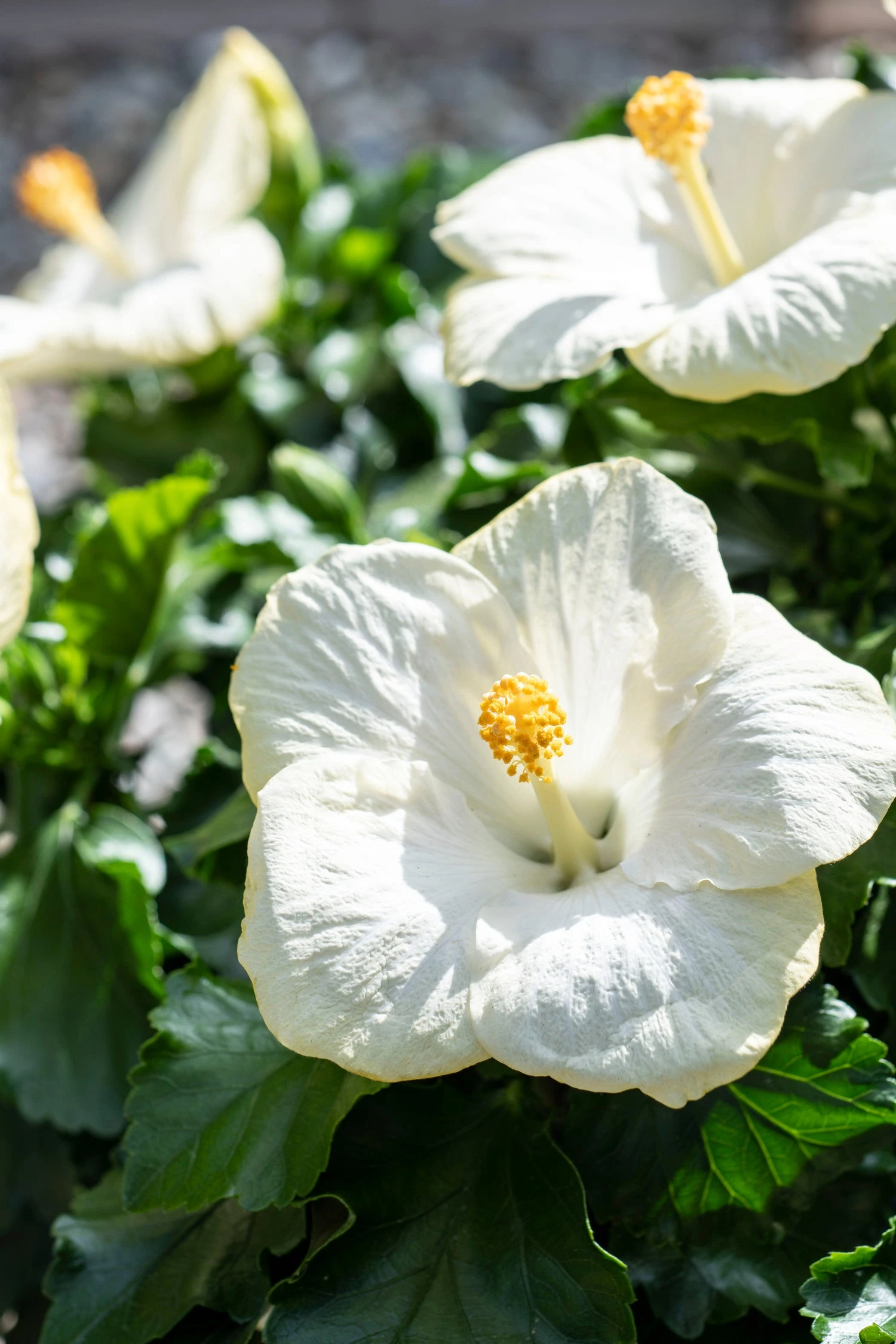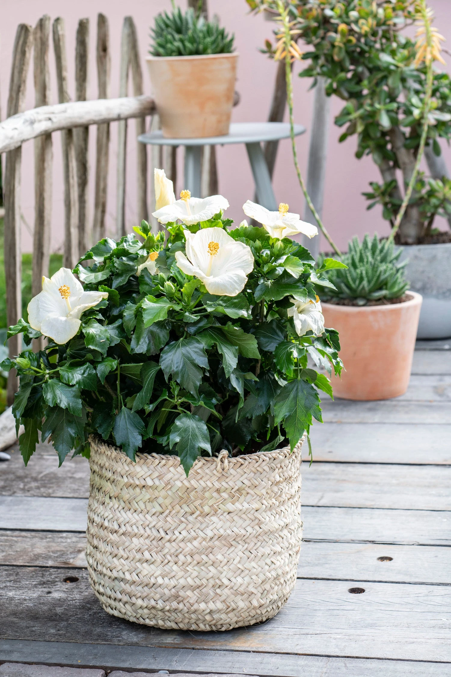 De bloemen van de Hibiscus zijn er in diverse felle kleuren en sommige variëteiten hebben zelfs dubbele bloemen. De bladeren zijn mooi helder groen. De Hibiscus staat bekend om zijn mooie struiken voor buiten.