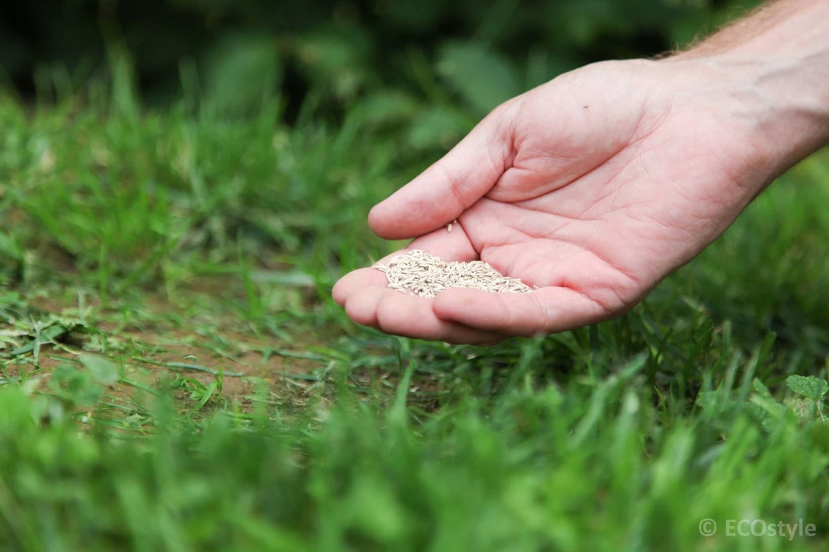 ECOstyle Graszaad-Herstel is speciaal ontwikkeld voor het inzaaien van kale plekken in het gazon na het verticuteren van het gras. Aan Graszaad-Herstel is een bacteriepreparaat toegevoegd. Dit preparaat zorgt ervoor dat het zaad evenwichtiger kiemt waardoor er snel een dichte grasmat ontstaat met een sterk wortelgestel. ECOstyle Graszaad-Herstel is omhuld met een natuurlijke coating waardoor het graszaad minder aantrekkelijk is voor vogels.