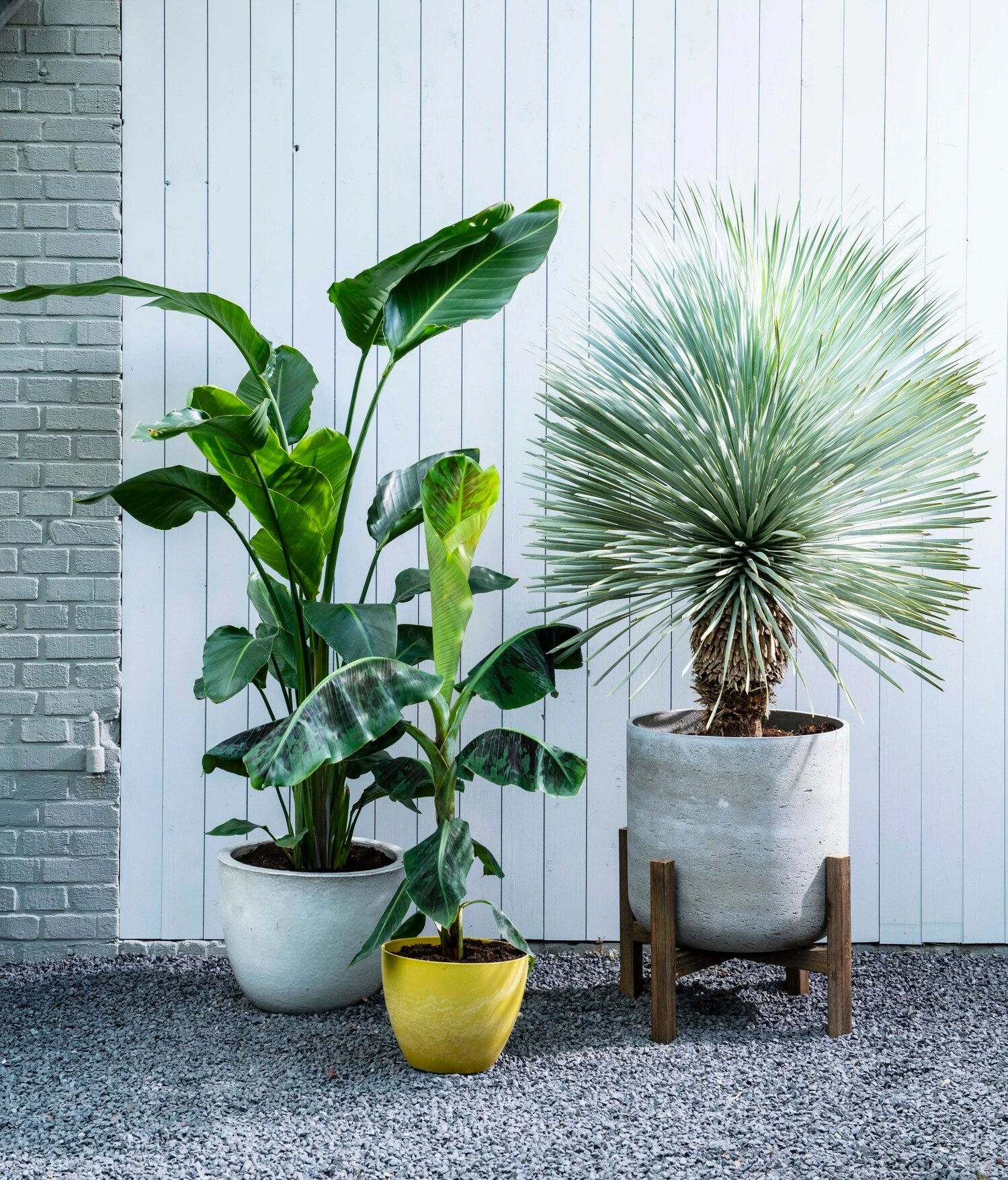 Ze hebben lange smalle bladeren en zijn te vinden met stam of zonder stam. In de natuur bloeien ze in prachtige trossen witte bloemen, in de huiskamer doen ze dit vaak niet. Bij ons is hij een prachtige stoere bladplant voor binnen die tegen een stootje kan. Een Yucca vormt blad aan de bovenkant van de stam.Â